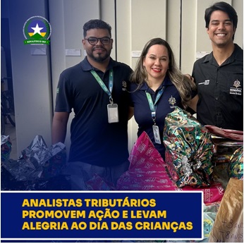 Servidores da SEFIN, entre eles, os Analistas Tributários Clarissa Barros e Igor Bruschi, concluíram com sucesso a campanha “Faça uma Criança Feliz”, uma ação solidária que mobilizou colegas de diferentes setores em prol de um gesto nobre: levar alegria a crianças em situação de vulnerabilidade social.
